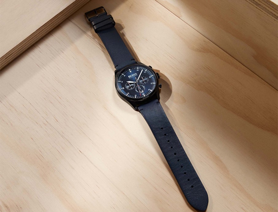 שעון יד לגבר HUGO BOSS רצועת עור שחורה דגם 1513831